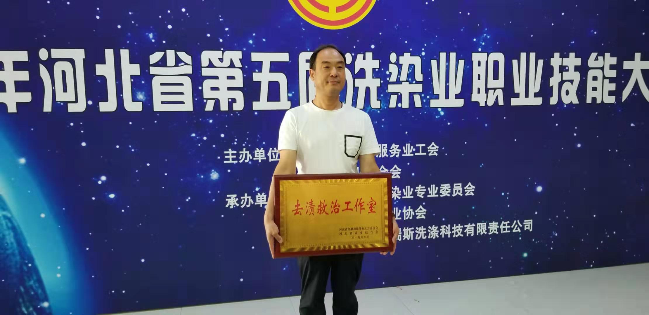 2019年8月31日"2019河北省第五屆洗染業職業技能大賽"圓滿落幕,本次大賽賽出水平、賽出風格,并選拔出了一大批高技能領軍人才,為了發揚和保持大賽精神,從而使我省洗染技術更進一步得到提高,通過本次大賽確定了五項技能“工作室”,其中“去漬救治工作室”在我石家莊新航星洗滌設備公司掛牌成立!